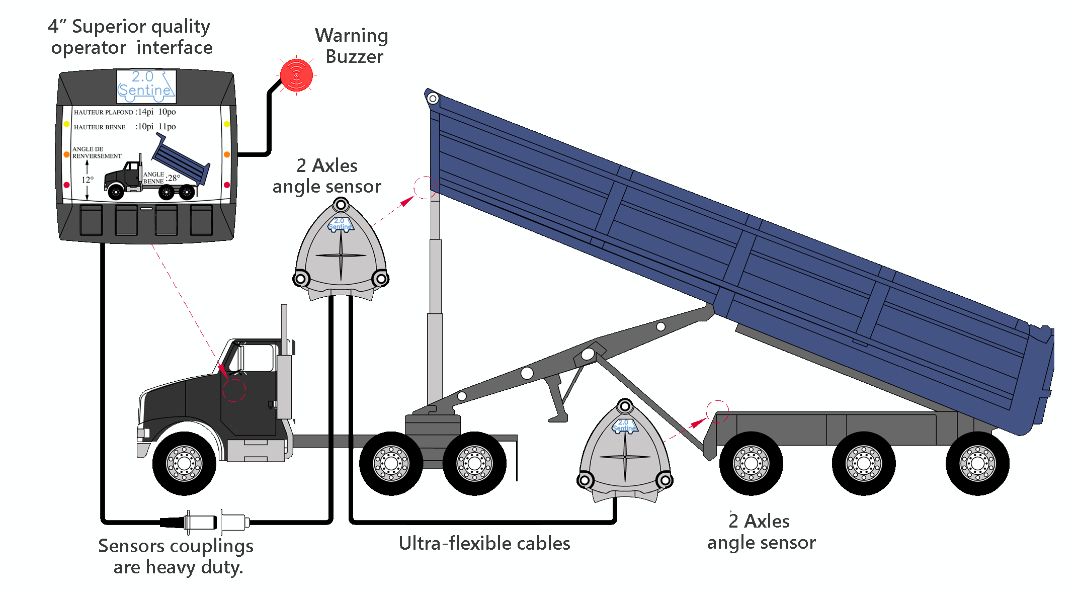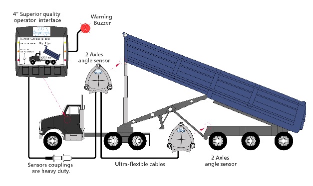 Trailer Tipper Kit: 2 Angle sensor, inclinometer-type IP67 Wireless main module -40°C to +85°C Set of 2 communication cables.